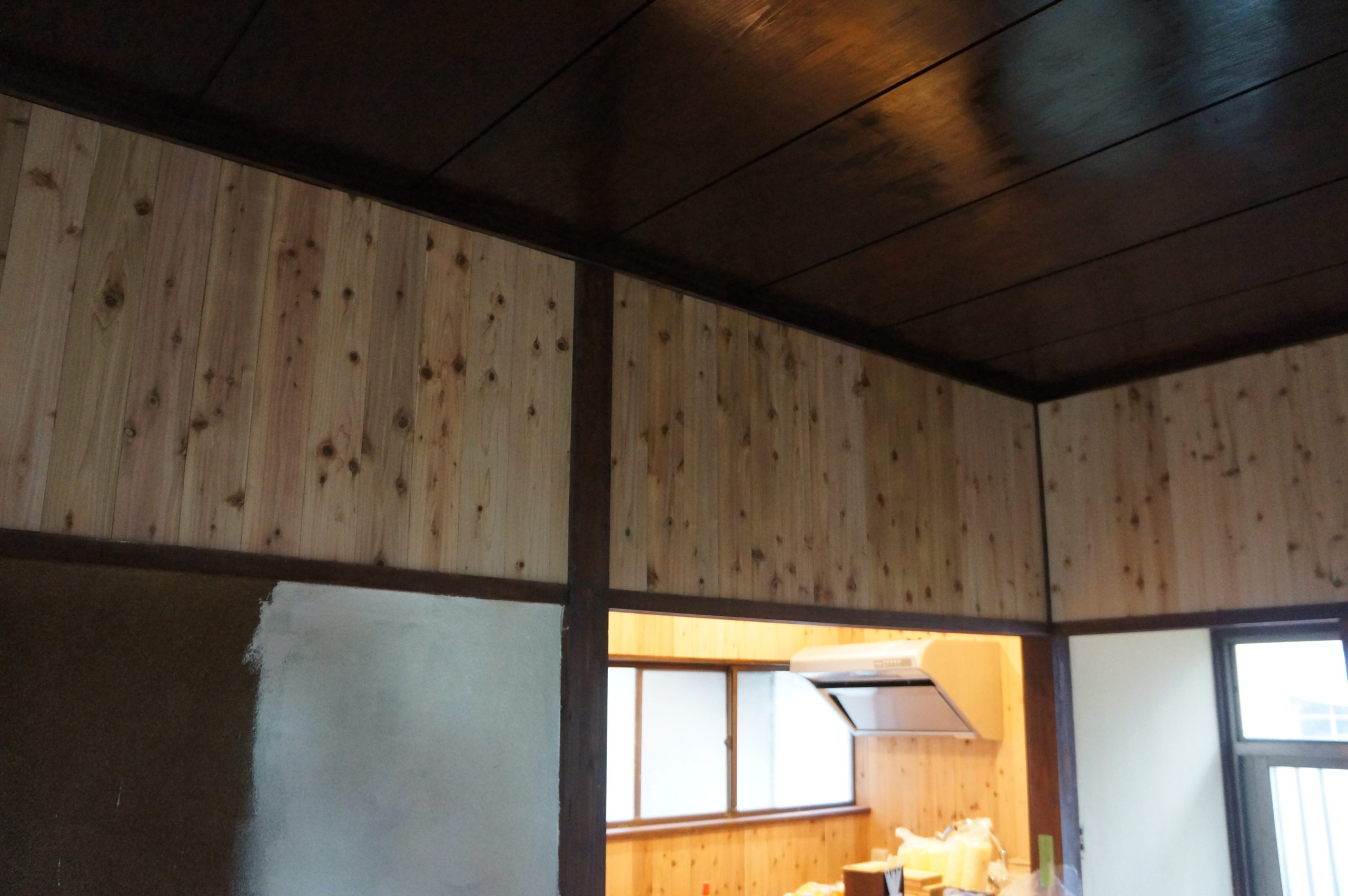 ことほくは、田村市常葉町にある空き家で、主にリビングと浴室の作業を進めました。当初の予定よりも、田村杉を使用する面積が増え、端材なども活用しながら、これでもか!というぐらい田村杉推しの家になってきています(笑)